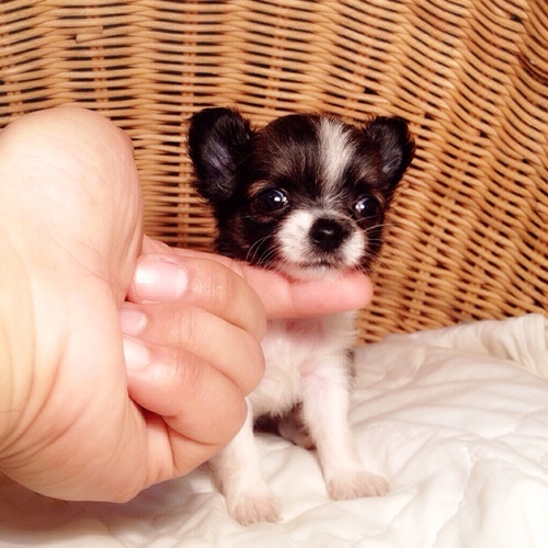 ขายลูกชิวาวาขนยาว เพศผู้ ไซ้เล็ก สี Fancy ขาวน้ำตาล ตามรูปคับ