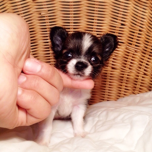 ขายลูกชิวาวาขนยาว เพศผู้ ไซ้เล็ก สี Fancy ขาวน้ำตาล