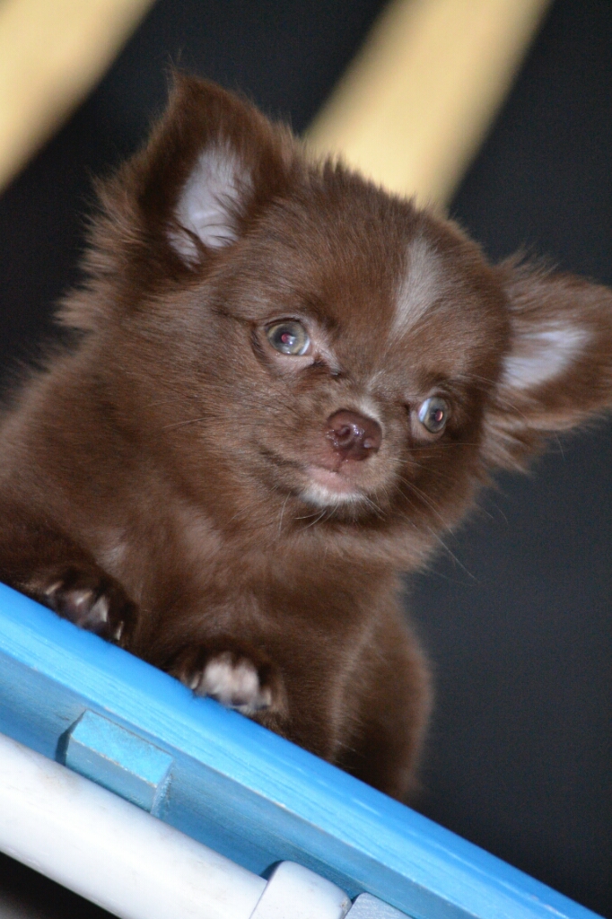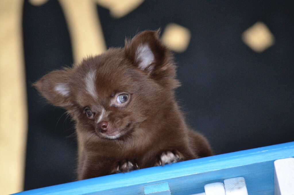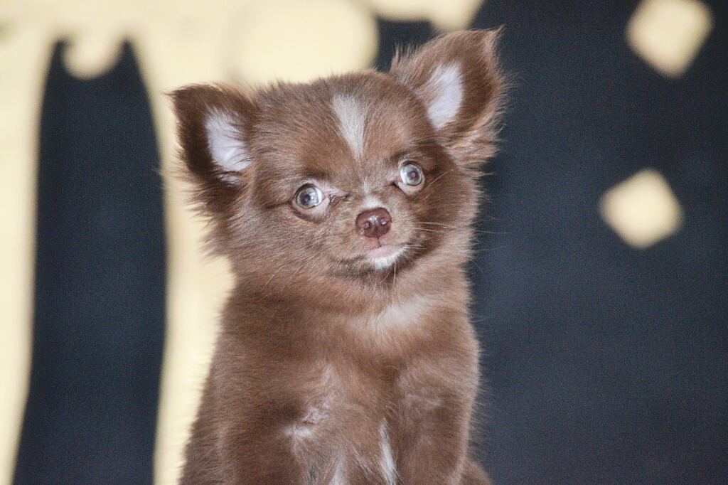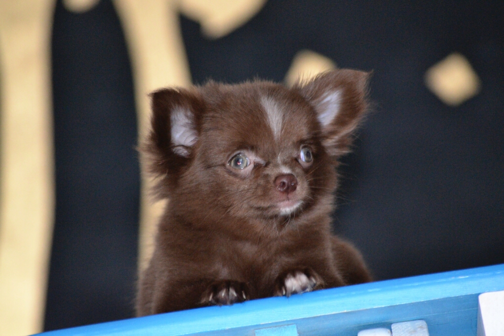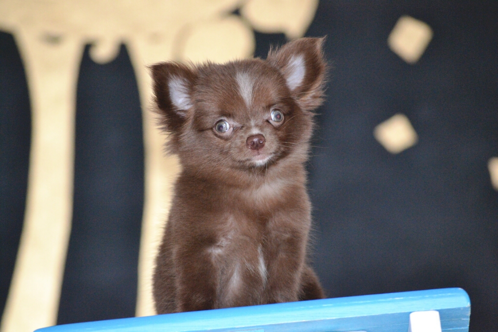ชิวาวา ตัวเล็กจิ๋ว สีช็อคโกแล็ต ขนยาว เพศชาย