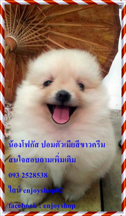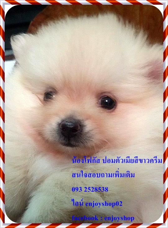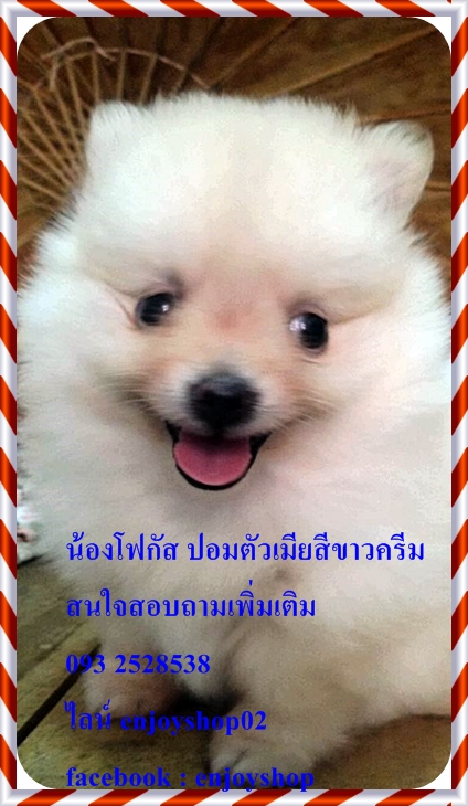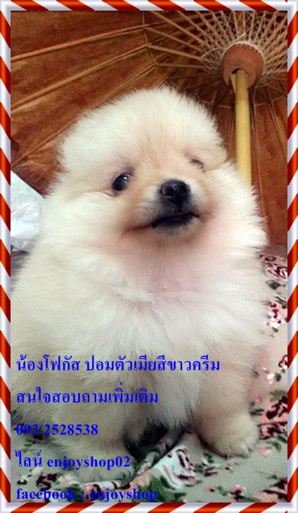 โฟกัสปอมตัวเมียสีขาวครีม เกิดวันที่ 30 มกราคม สุขภาพแข็งแรง ซุกซนกินเก่ง