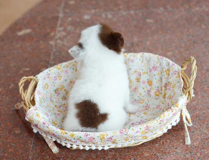 รูปที่ 5-9 "น้องเยลลี่" เพศเมียขนยาวสีขาวน้ำตาลชอค หัวกลมโตน่ารัก สายสีชอค ราคา 13500