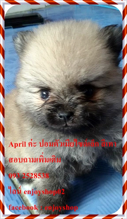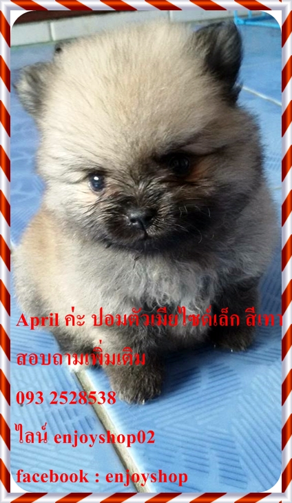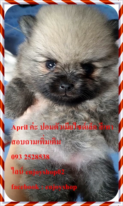 April ปอมตัวเมียเกิดวันที่ 5 กพ สุขภาพแข็งแรง ซุกซนพร้อมย้ายบ้านค่ะ สั่งซื้อวันนี้ฟรี ค่าส่ง ฟรีบล็อคส่งน้องหมา ฟรี ที่ดื่มน้ำน้องหมา ถ่ายพยาธิฟรี สอบถามเพิ่มเติม 093 2528538 ไลน์ enjoyshop02 facebook: enjoyshop