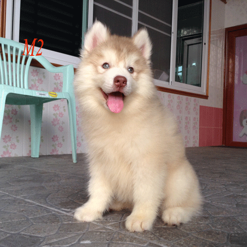 M2 เพศผู้ สีไรท์เรด(ขาว+น้ำตาล) ตาสีอัลมอนด์(น้ำตาลเหลือง)