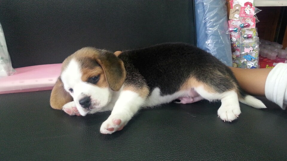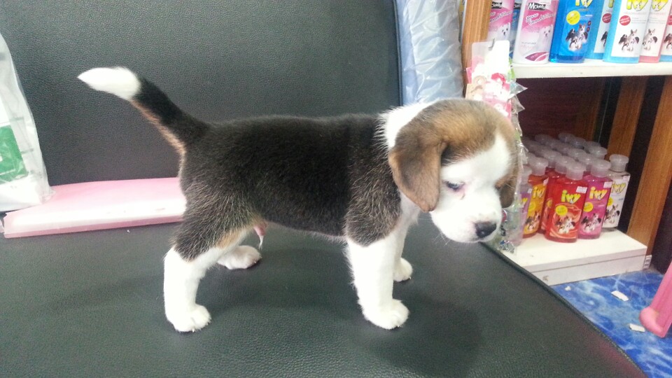 ขายลูกบีเกิ้ลแท้ 3สี อายุ45วัน ตาฟ้าเพศผู้ ไซส์13" เพ็ดเต็มใบ ฉีดวัคซีนแล้ว