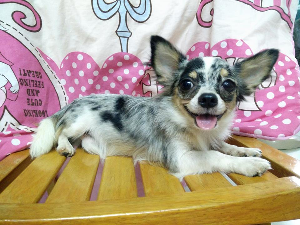 ชิวาวาขนยาว สีบลูเมอร์เร่ย์ มีคิ้ว ขาสั้น น่ารัก สีบลูเมอร์แน่นๆ เกรดพรีเมี่ยม จ่ายลูกสีเมอร์แน่นๆลายกระจายสวย ตัวเตี้ยๆ