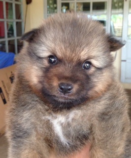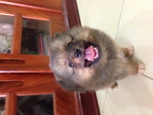 ลูกปอมสีน้ำตาล ราคาถูก เป็นลูกสุนัขบ้านมีตัวเดียวครับ