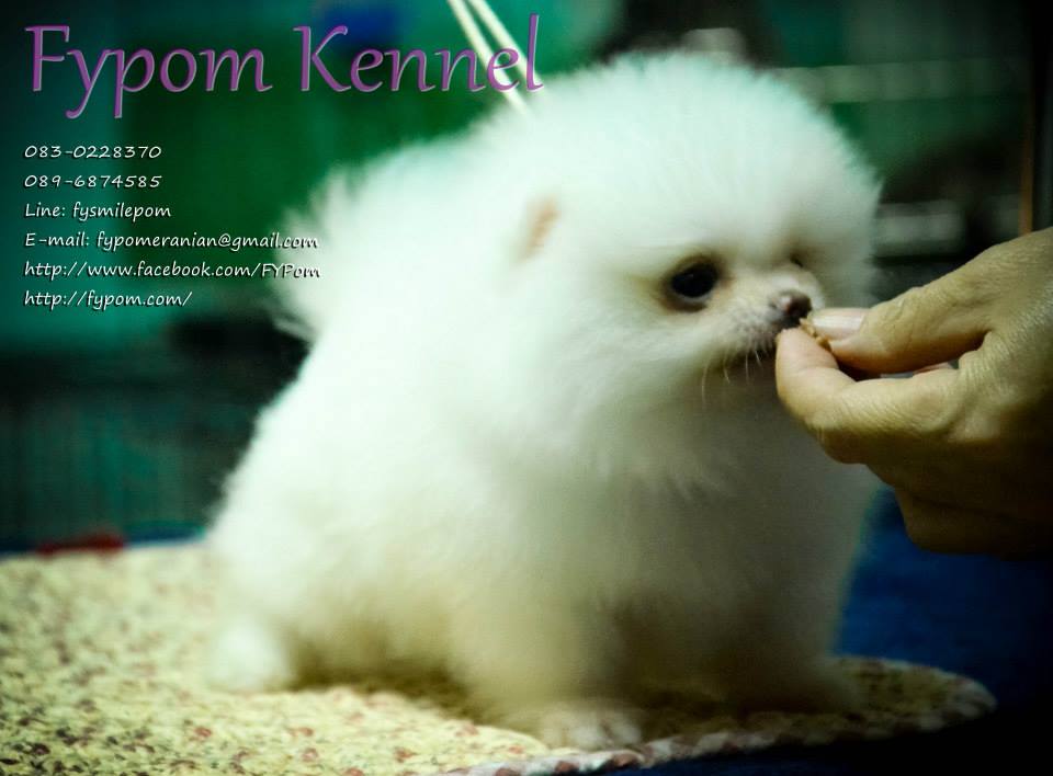 FYPOM KENNEL ขายน้อง Snowman เพศผู้ สีขาว ขนแน่นสองชั้น โครงสร้างดี