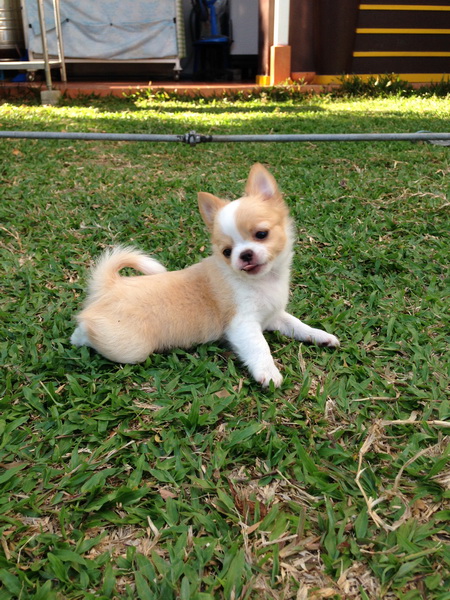 น้องชิวาวา สายพันธุ์แท้ ขนยาว ขนแน่นมากจ้า เด็กๆทานอาหารเม็ด ฉี่ใส่แพทรองเป็นแล้วค่ะ