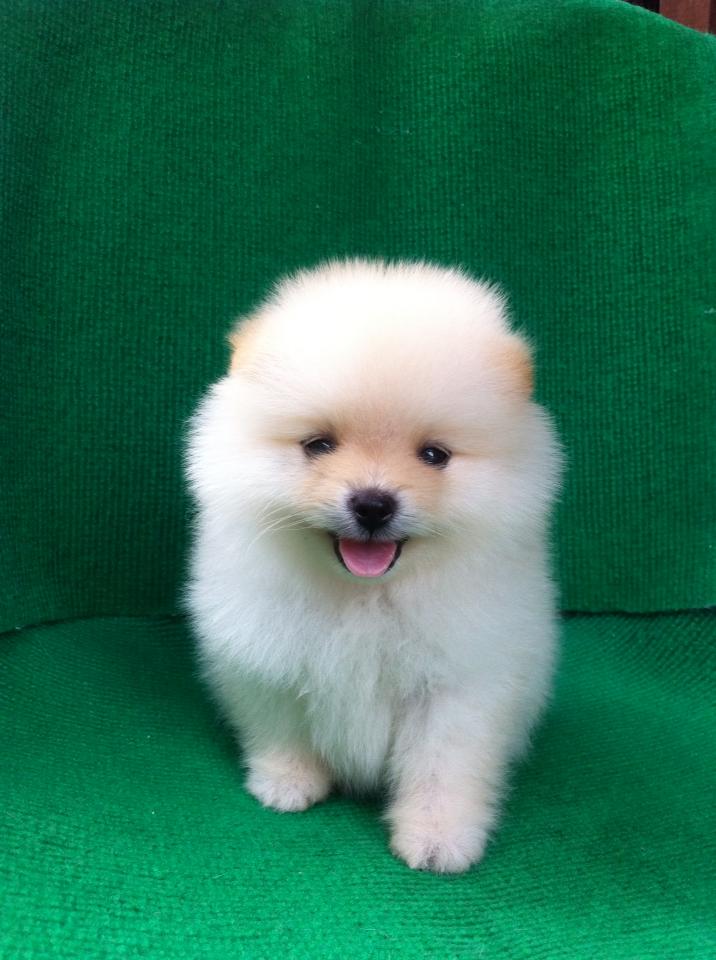 ขายลูกปอมหน้าหมีตัวผู้สีขาวครืม 1 ตัวครับ ลูกหมาที่บ้านเลิ้ยงเองครับ
