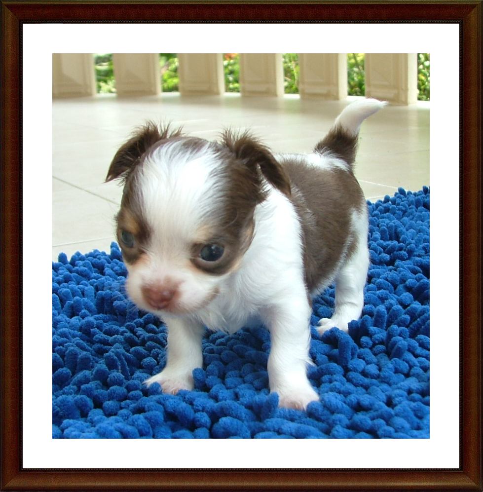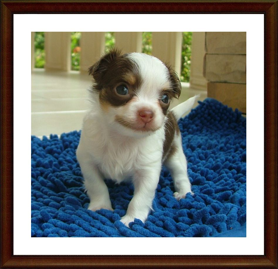 ชิวาวาเพศผู้ขนยาวน้องสมายด์สีขาว-ช็อคมาร์คกิ้งสวยไซร์เล็กจ้า