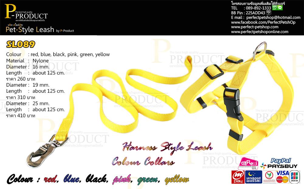 รหัส SL089 สายจูงพร้อมที่รัดอกสีสดใส