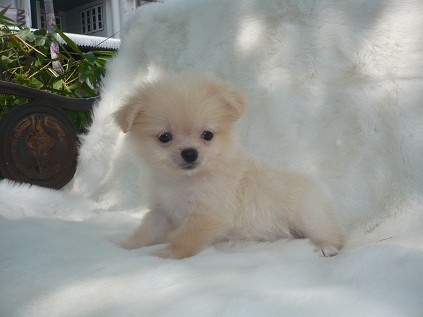 ตัวที่2 ขายลูกปอมผสมปักกิ่ง เพศผู้ สีครีม ขนฟูแน่น พร้อมประกันสุขภาพ