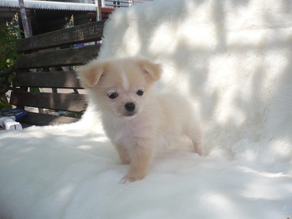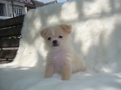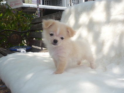ตัวที่4 ขายลูกปอมผสมปักกิ่ง เพศผู้ สีครีม ขนฟูแน่น พร้อมประกันสุขภาพ