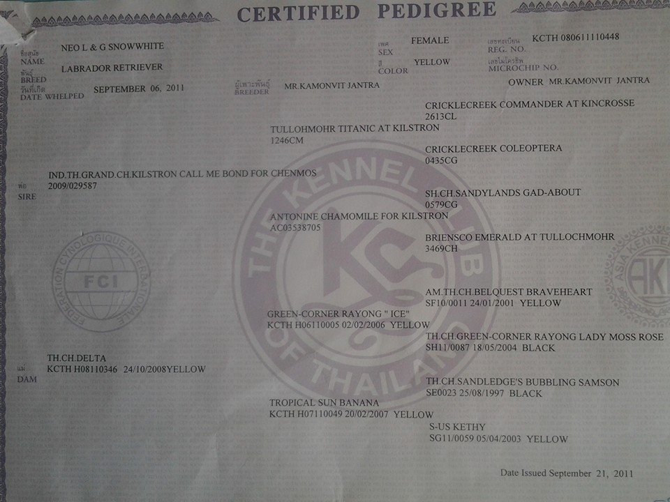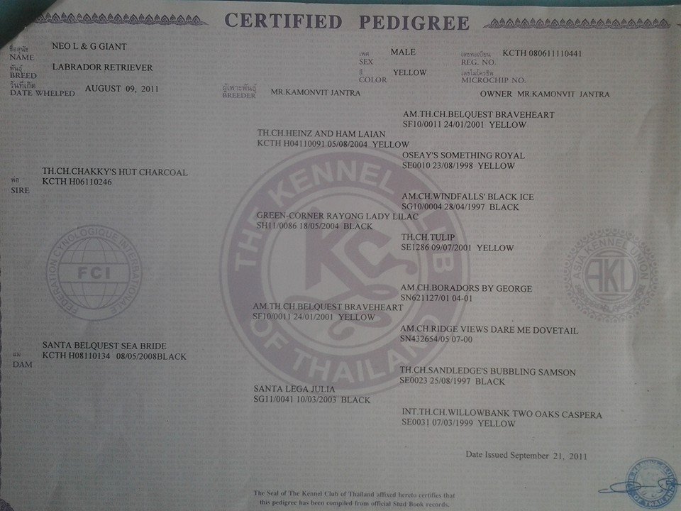 ขายพ่อพันธ์ลูกไทยแชมป์แม่พันธ์ลาบราดอร์ลูกแกรนด์แชมป์