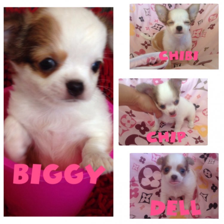 ชิวาว่าสี่หนุ่มน้อย สีขาวน้ำตาล ไซส์เล็ก . เกิด 6 มีนาคม 57 มีใบเพดดีกรี จากสมาคม. น่ารักขี้เล่น. สนใจ โทร 0901079565.หรือ ขอดู รูป เพิ่มเติม ที่ ไลน์ ไอดี ouiouifire ได้เลยค่ะ.