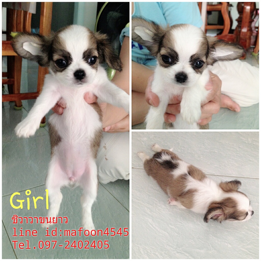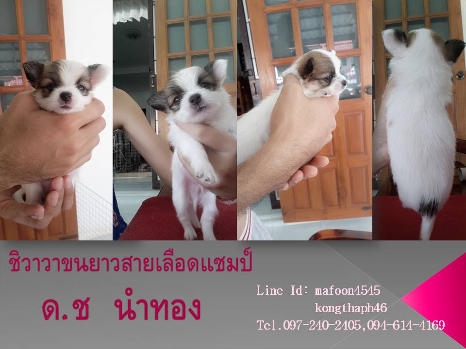 ขายชิวาวาขนยาว ขาวล้วน เพศเมีย+ผู้ สายเลือดแชมป์ พร้อมใบเพ็ด ราคาถูก!!!!