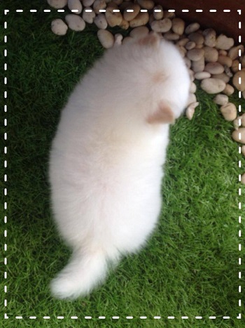 ด.ช.ไดมอน เพศผู้ สีขาวสำลี หูครีม 2 ข่าง ขนแน่นฟู