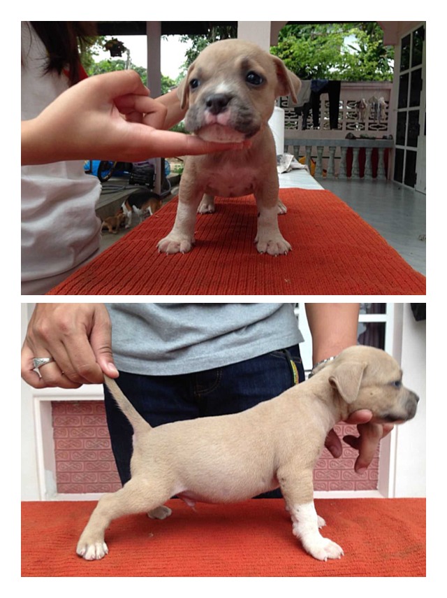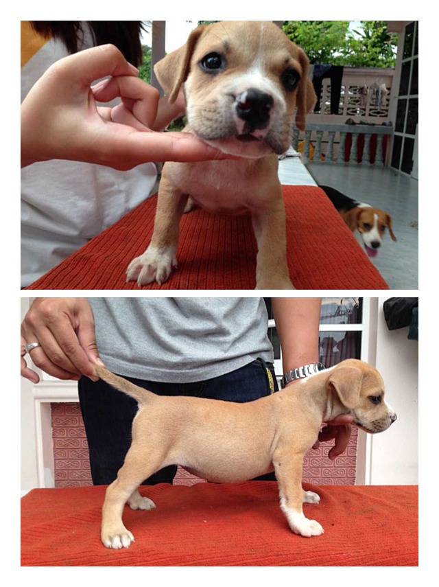 ลูกสุนัขอเมริกันพิทบูล มีเลือดบูลลี่ในตัว 75% พ่อเลือดพิทบูลผสมบูลลี่ แม่เป็นบูลลี่ ทำวัคซีนเข็มแรกพร้อมกับถ่ายพยาธิเรียบร้อยแล้ว ลูกสุนัขอยู่จังหวัดฉะเชิงเทรา สนใจตัวไหนโทรมาสอบถามได้เลยครับ082-0566900 หรือ@line id tosdaviss ชื่อ โต๊ส ครับ ราคาอยู่ที่ 2500-4000 รับรองว่าไม่แหลมแน่นอนเพราะมีเลือดบูลลี่อยู่ในตัวถึง 75%