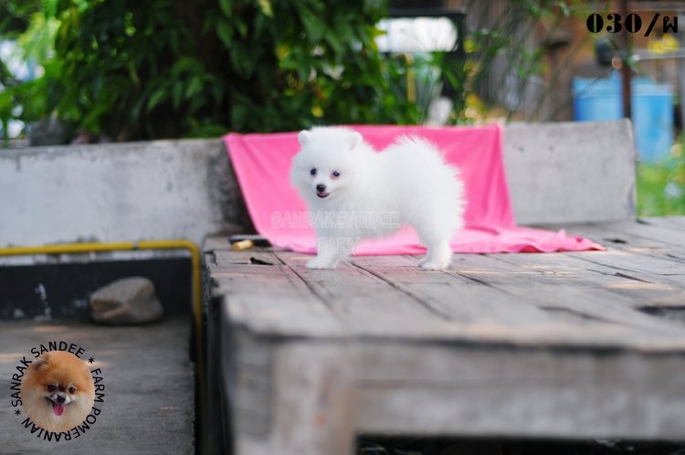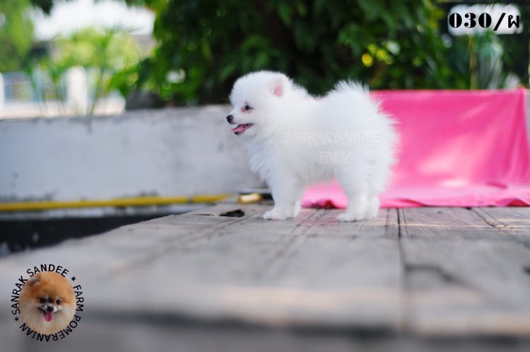 ขายน้องปอมเมอเรเนียน เพศผู้ สีขาว น่ารักๆ ขี้อ้อนสุดๆ ราคา 8500 บาท