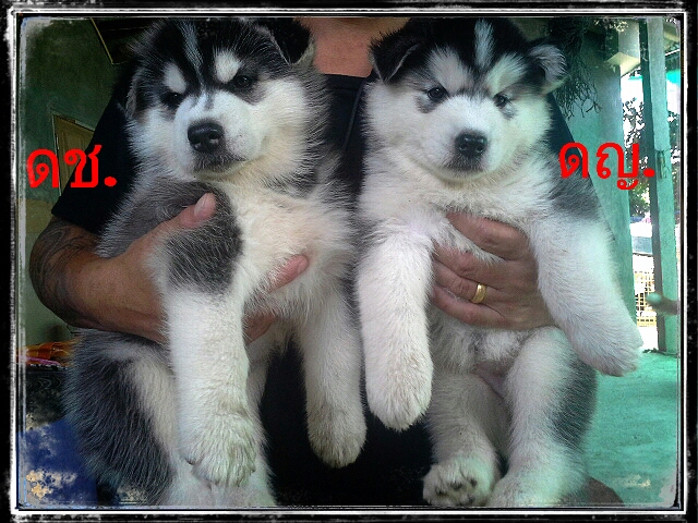 ไซบีเรียนฮัสกี้ สีขาวดำตาอัลม่อน สุขภาพดี วัคซีนรวมห้าโรคแล้วเข็ม พ่อสีขาวดำวู้ดลี่โค้ด