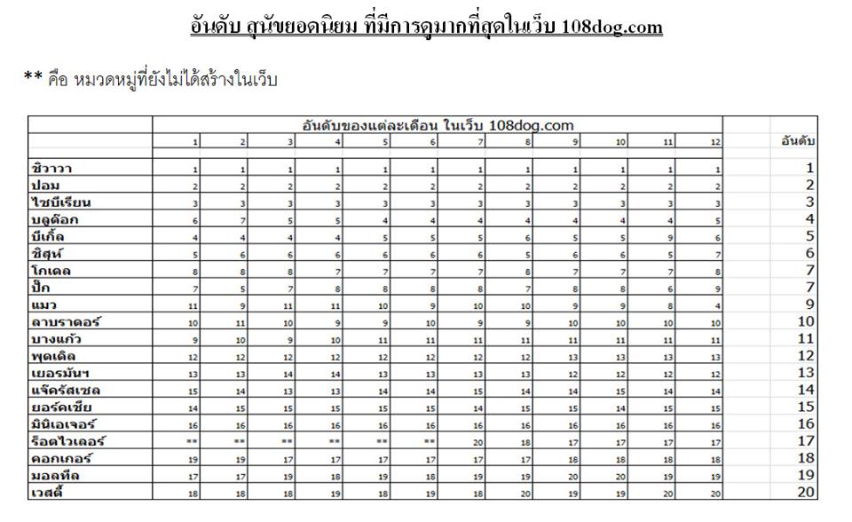 ข้อมูลลำดับ ยอดผู้เข้าชมเพื่อ ซื้อ-ขาย สุนัข ประจำปี 2556