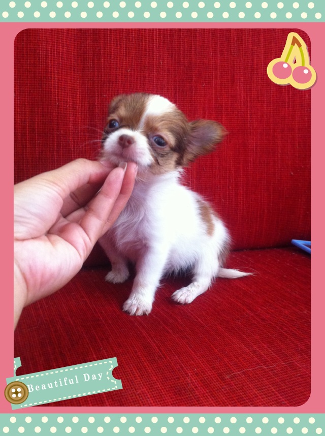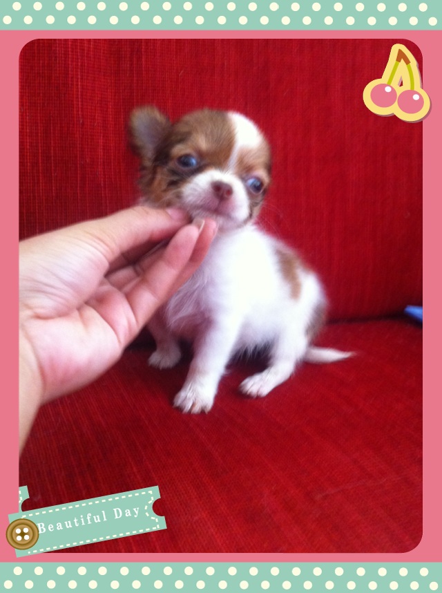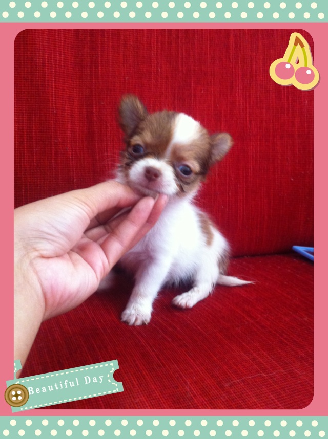 ชิวาวาขนยาว ไซด์เล็ก สีขาวช็อคอ่อน หัวโต หน้าสั้น เพศเมีย อายุ50วัน วัคซีน1เข็ม ร่าเริง ขี้อ้อน แข็งแรง สนใจโทร.0882004800 ตลอด24ชม.บริการส่งฟรีค่ะ