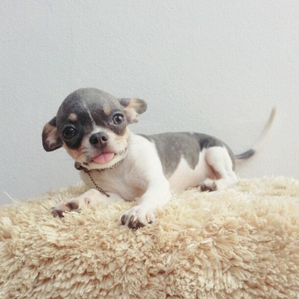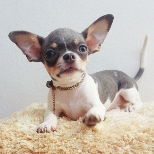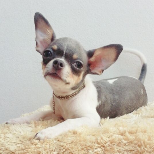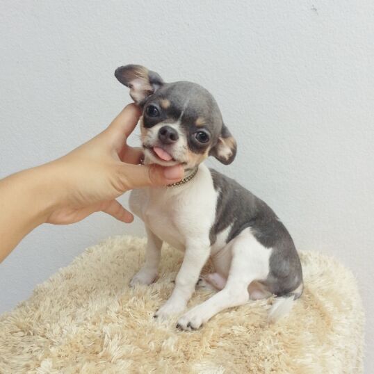 ชิวาวาเพศผู้ ขนสั้น สีแฟนซีขาว-เทา