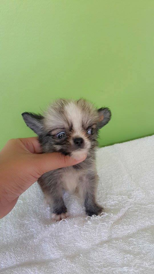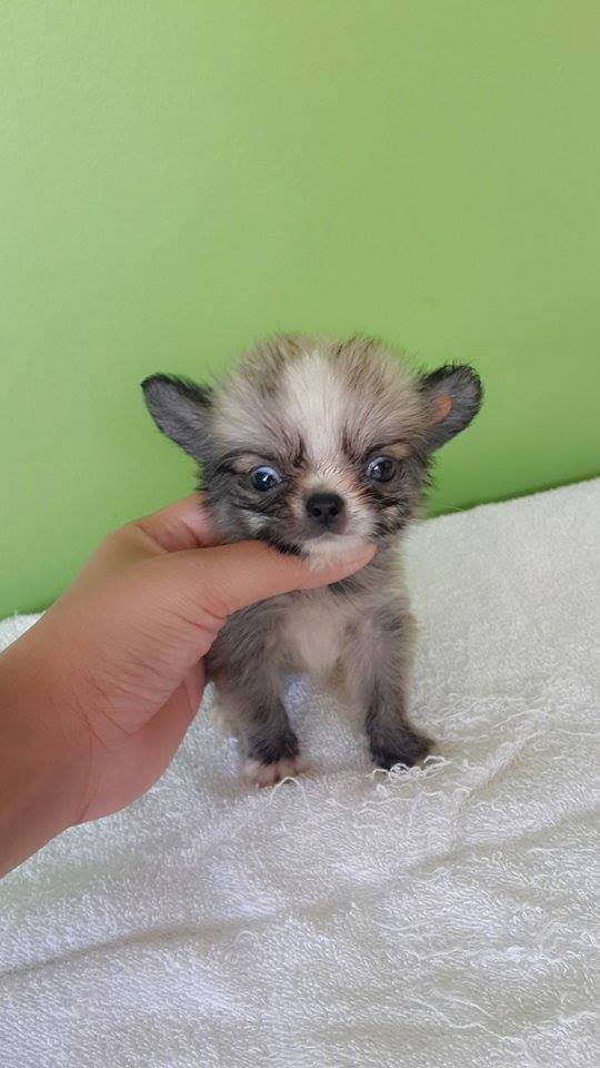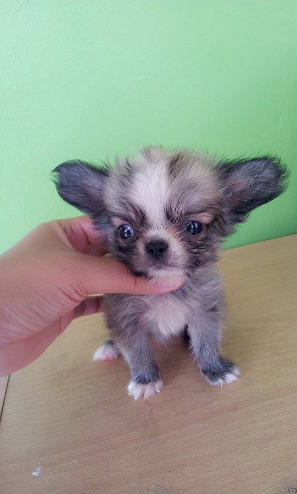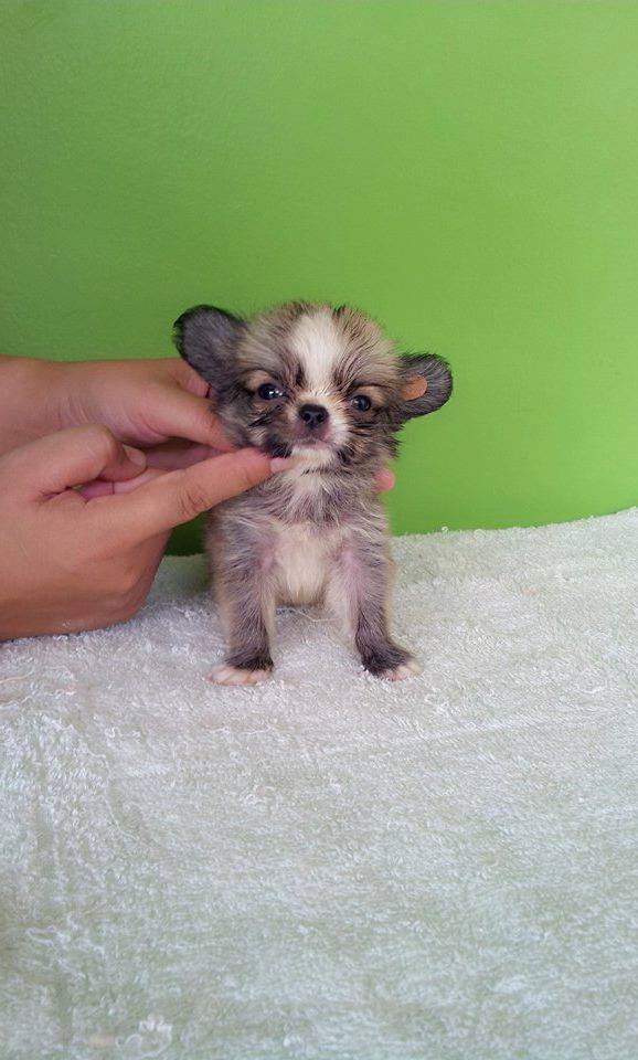 น้องมะกอก ชิวาวาเพศผู้ขนยาว สายไต้หวันไซส์เล็ก หน้าสั้นหัก ปากบวมๆ มีใบเพ็ด 12000