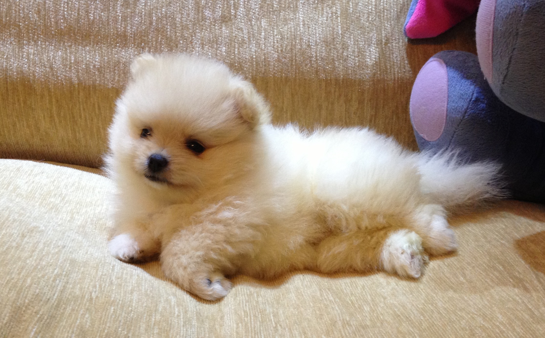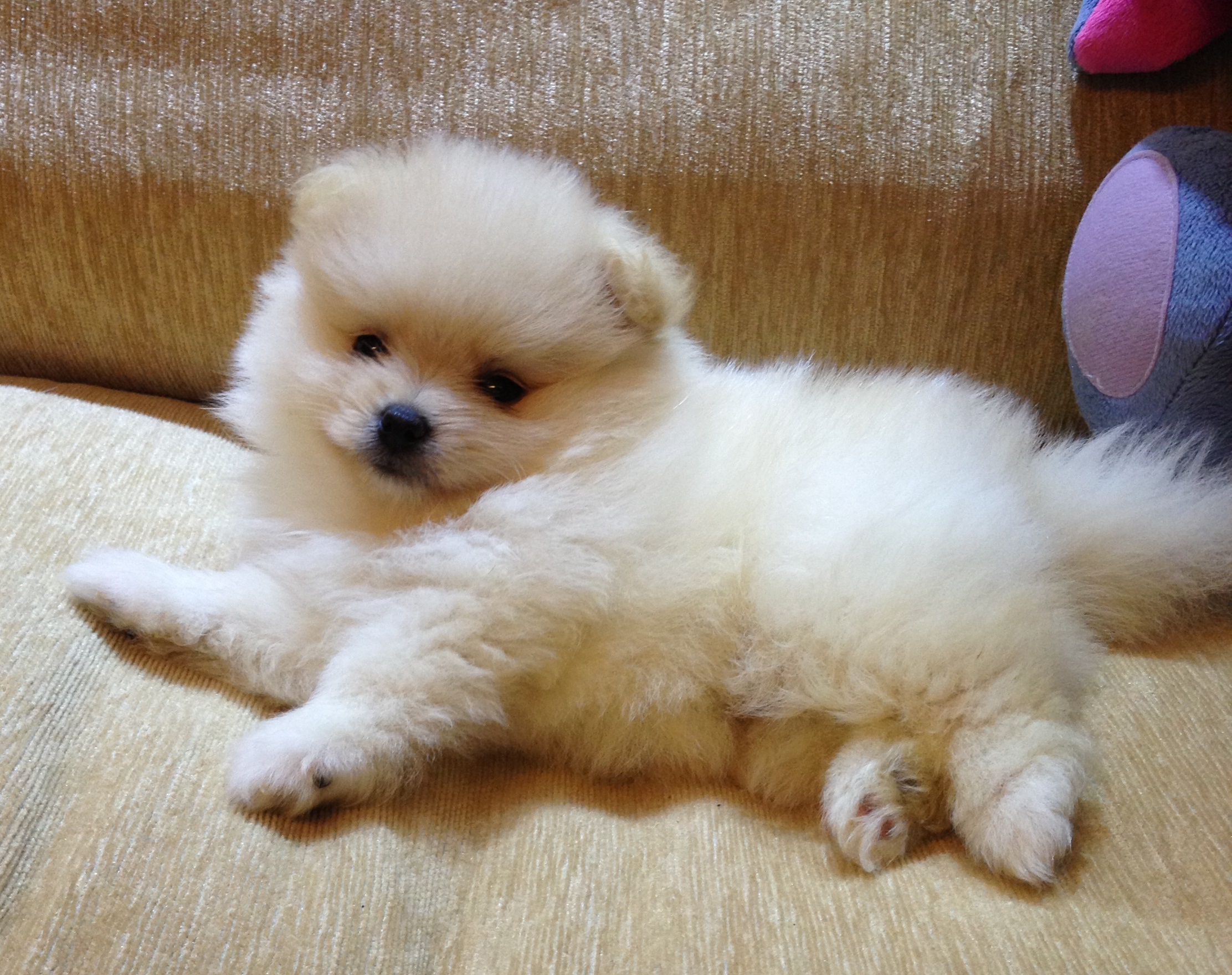 ขายลูกสุนัขปอมเพศเมีย สีขาวครีม อายุ 45วัน 14,000 บาท วัคซีนครบ