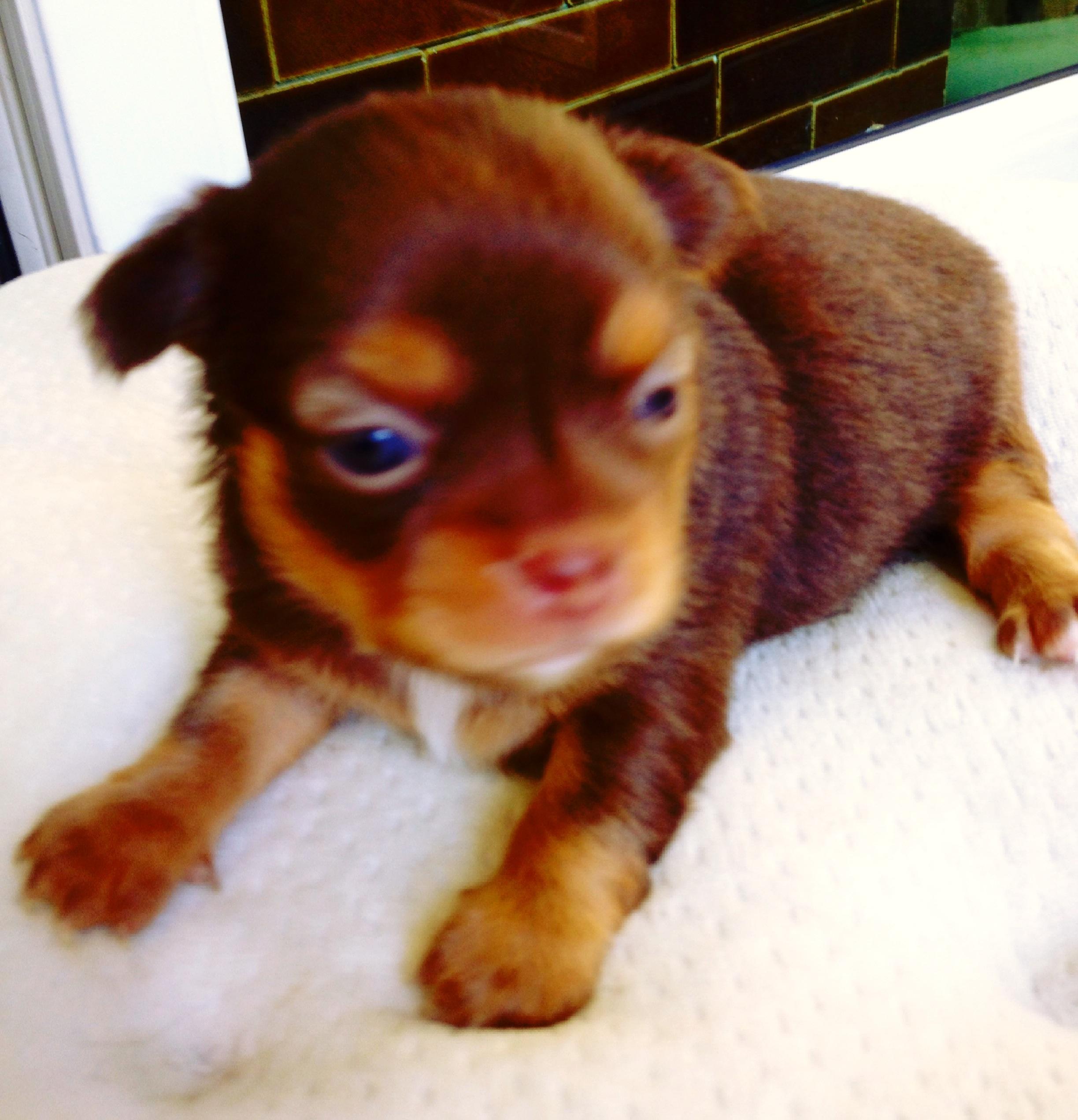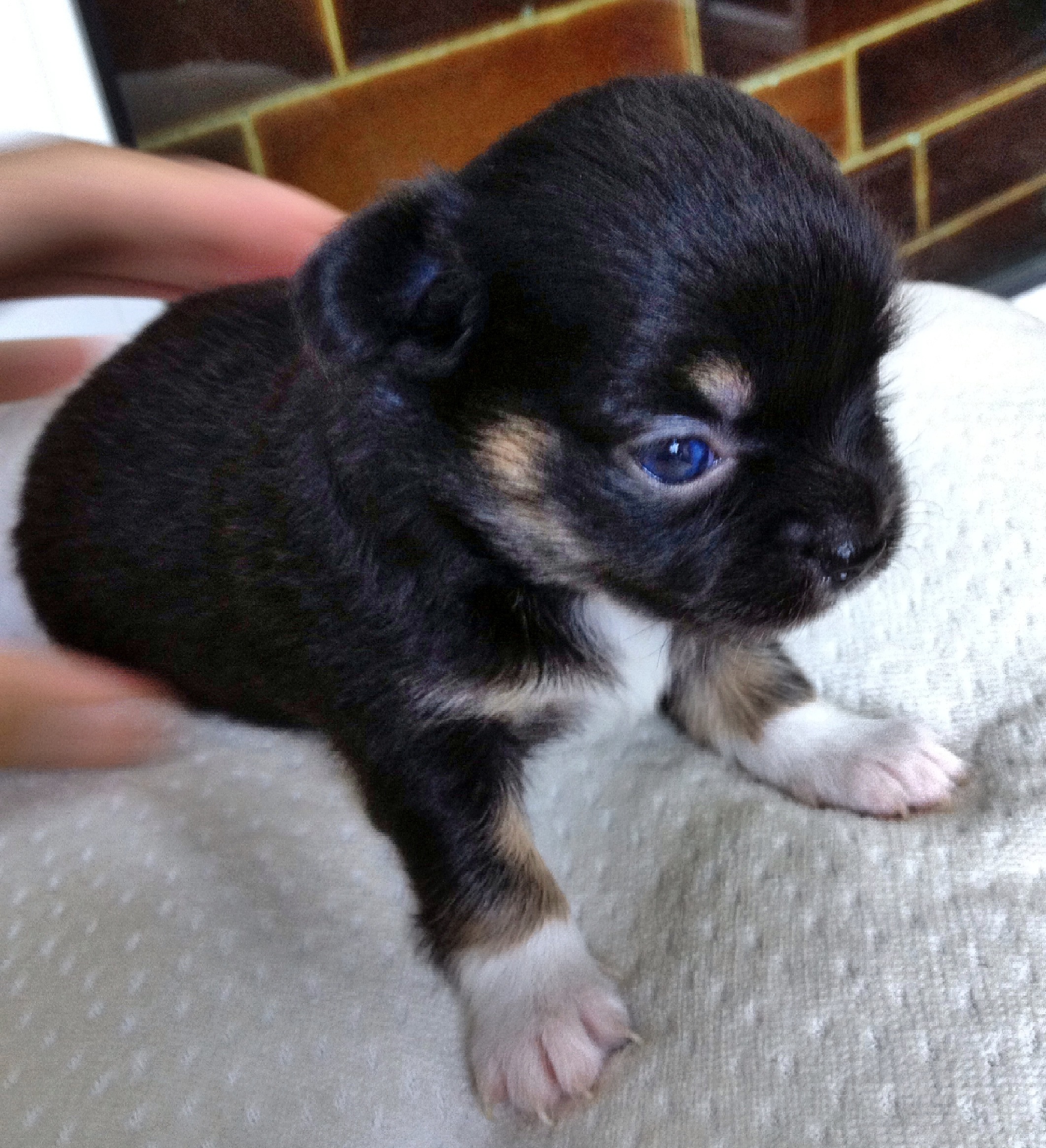 ชิวาวา ขนยาว อายุ 1เดือน ครับ ตอนนี้เหลือสีดำ2ตัวครับ