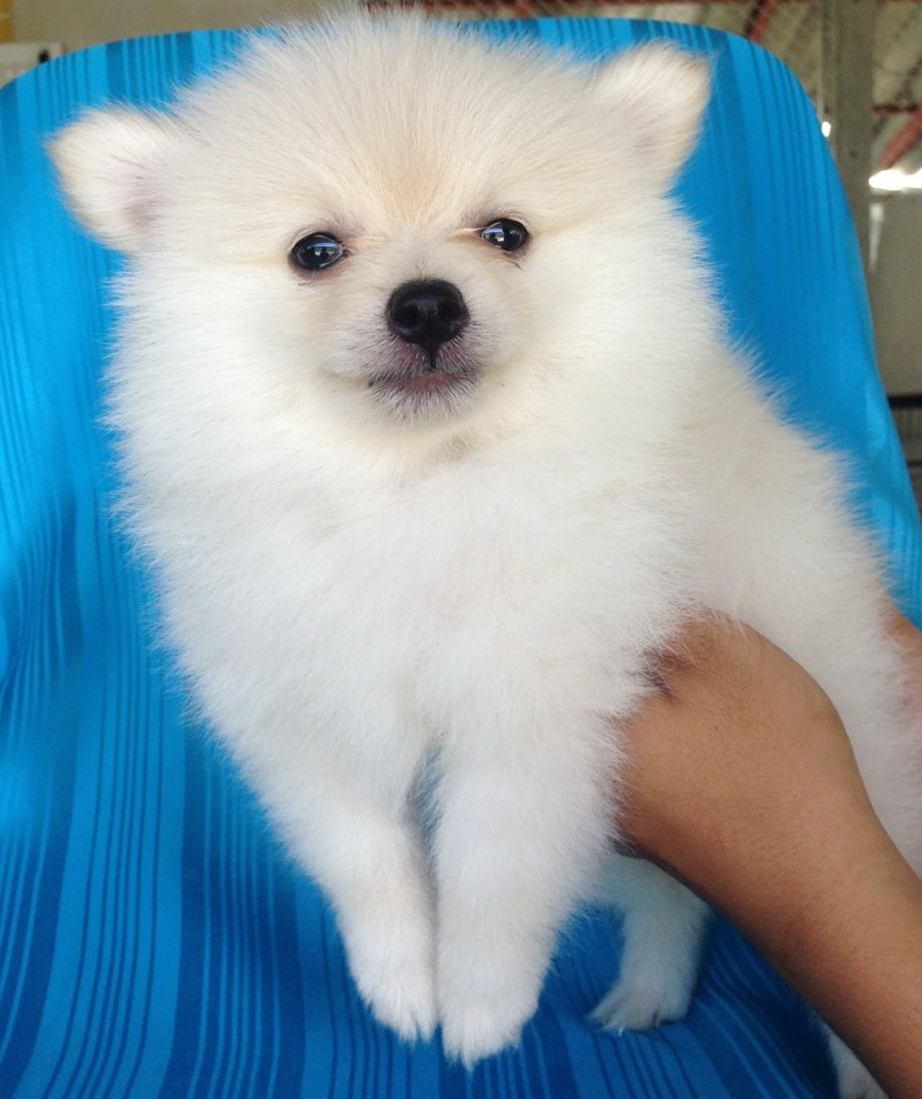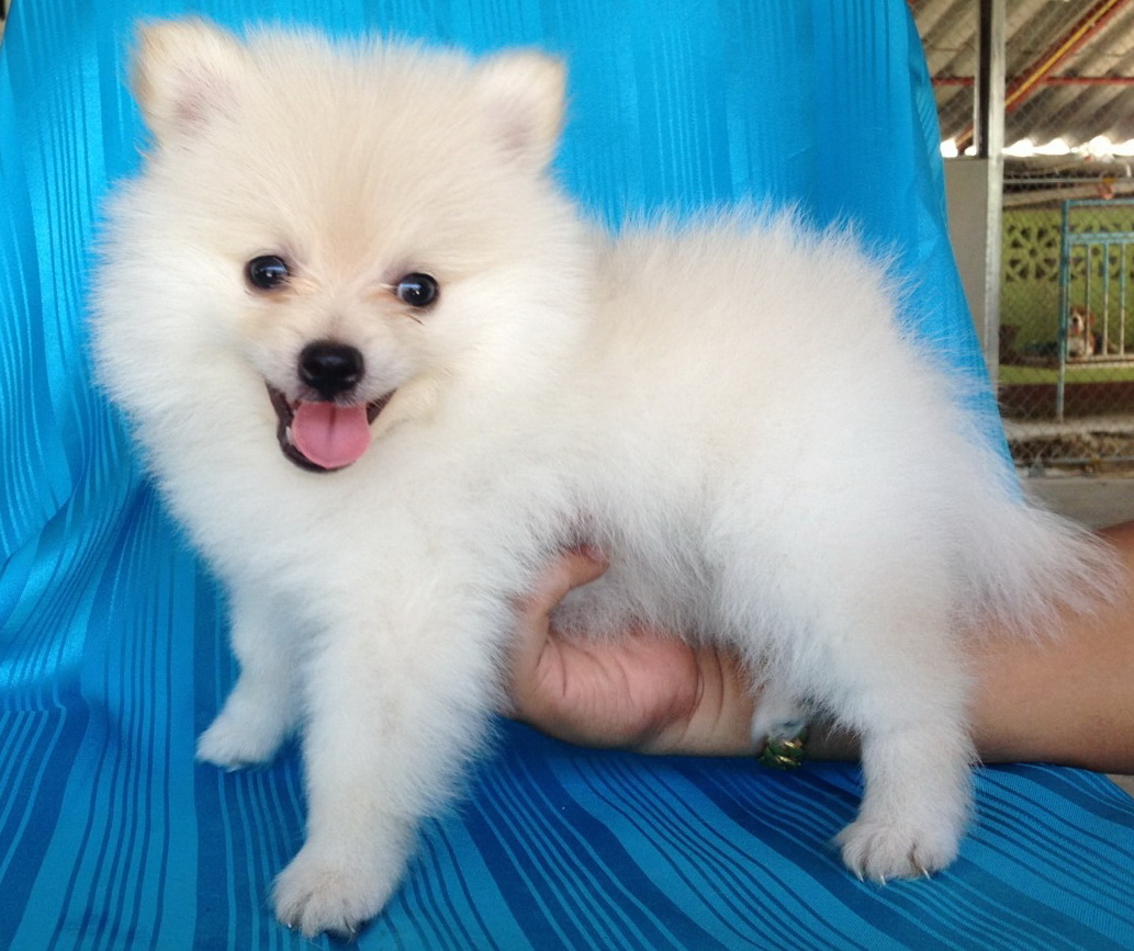 ลูกปอมขาวเพศผู้ อายุ 55 วัน ฟอร์มสวยจัด ขนแน่น ไซส์เล็ก สุขภาพแข็งแรง ขี้เล่น