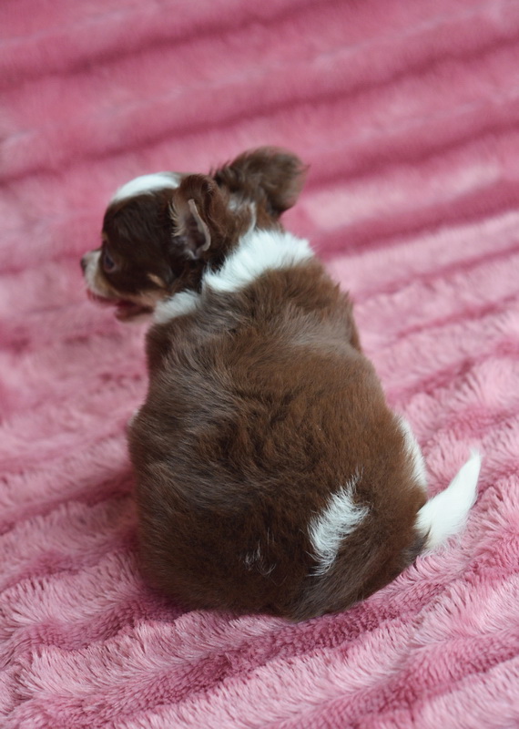 ★^-^*★ WWW.WOWWCHIHUAHUA.COM★^-^*★.... "น้องเบคอน" เพศผู้ขนยาวสีขาวชอคโกแลต