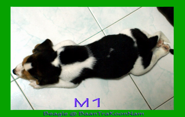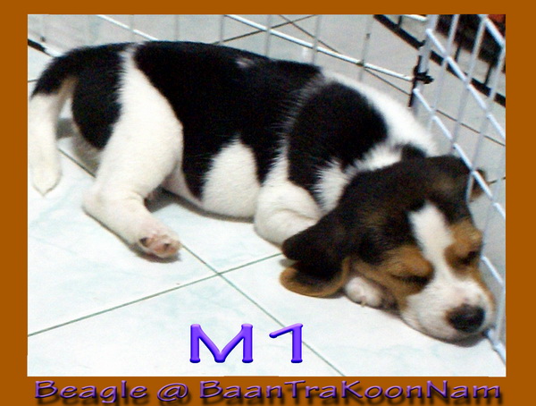 เด็กชาย M1 ลูกสุนัขบีเกิ้ล 3 สี ลายแฟนซี 13 นิ้ว เพศผู้ อายุ 50 วัน