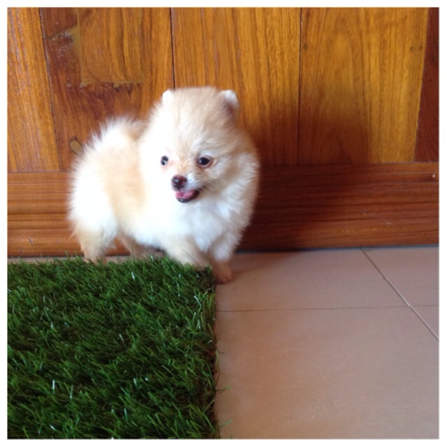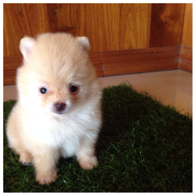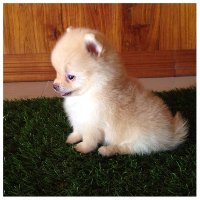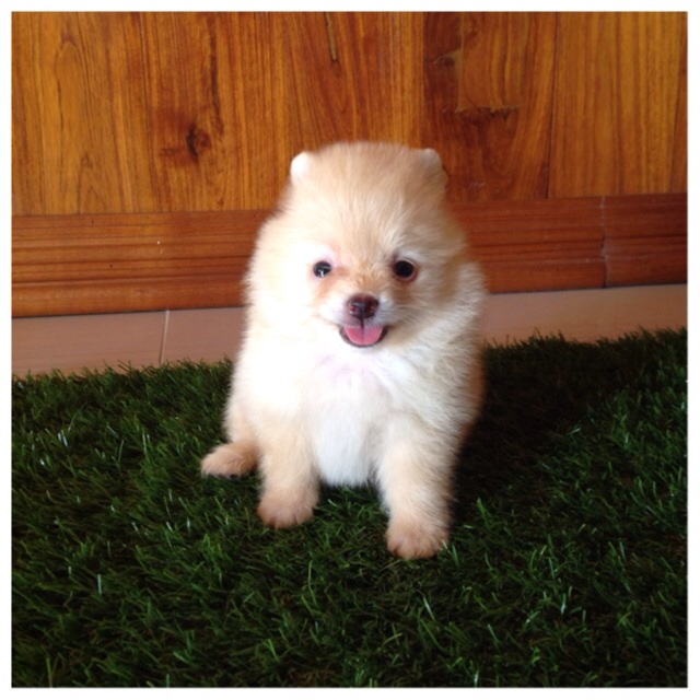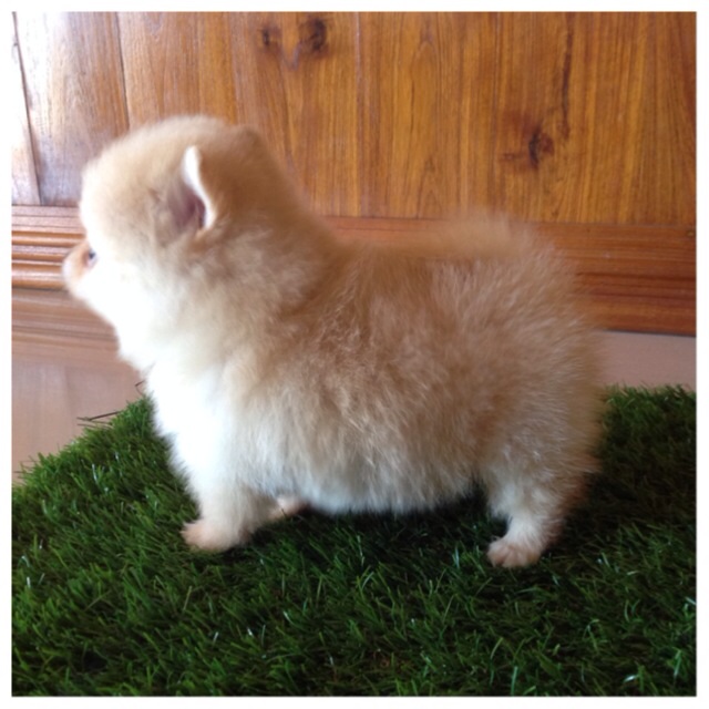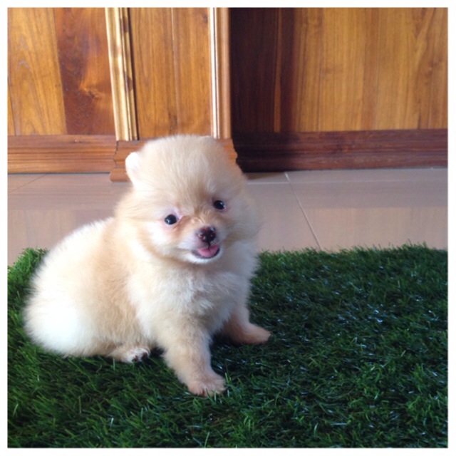 น้องปอมเมอเรเนียน เพศผู้ สีครีม ไซส์เล็ก ขนฟูหนา ขาใหญ่ วัยกำลังซน อายุ 45 วัน