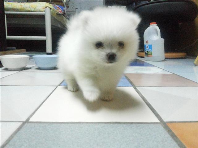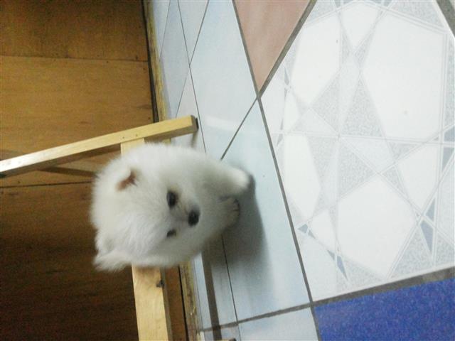 ปอม สีขาว เพศผู้ อายุ 40 วัน ไซด์เล็ก หน้าสั้น