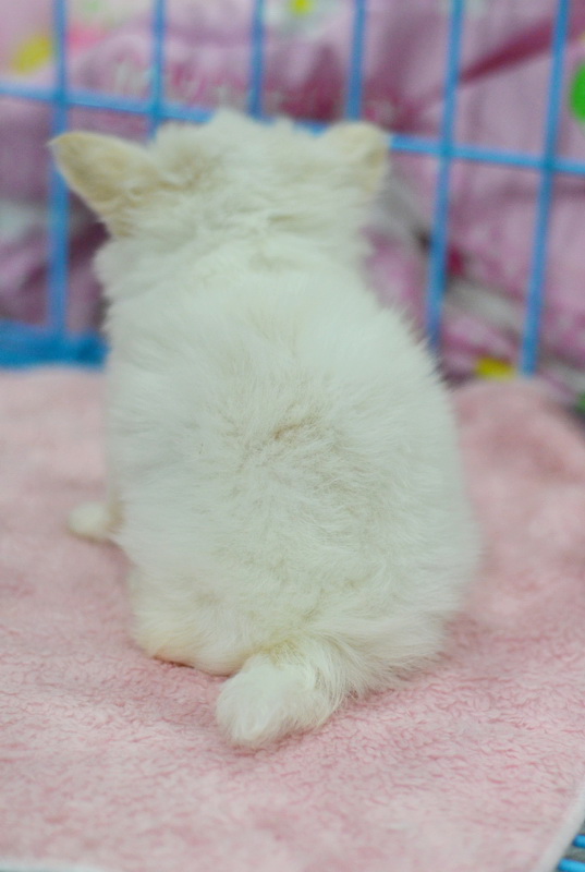 รูปที่ 5-9 "น้องไข่หวาน" เพศเมียขนยาวสีขาวครีม หัวโตหน้าสั้น ขาสั้นน่ารัก ขนแน่นมาก ไซด์เล็ก ราคา 11000