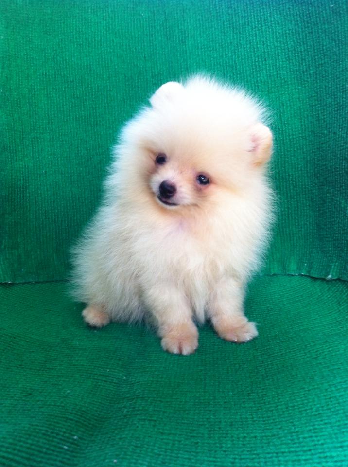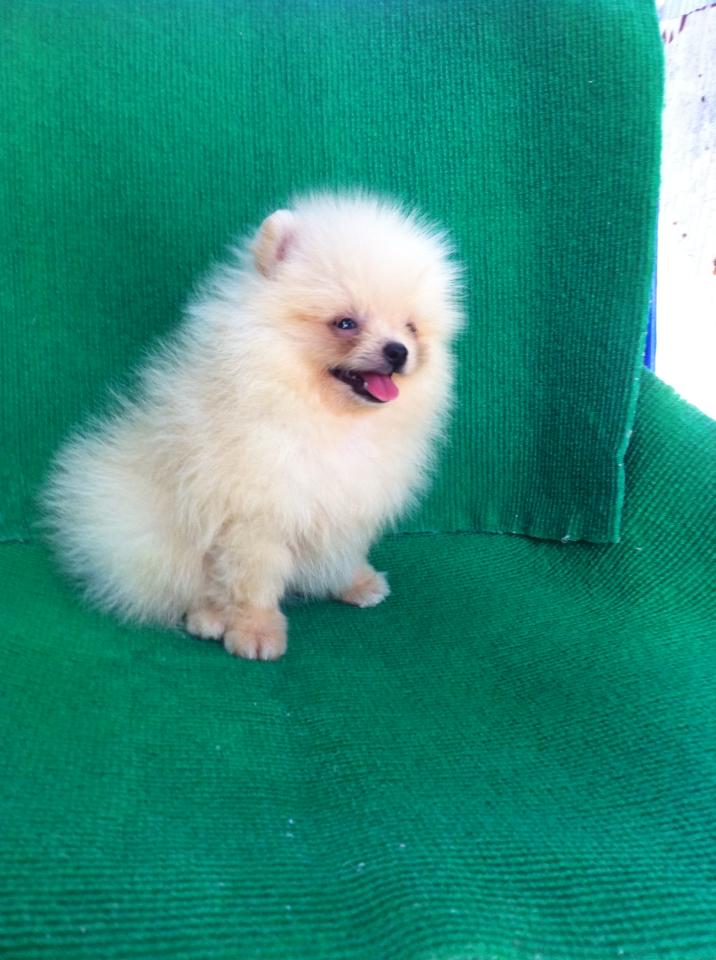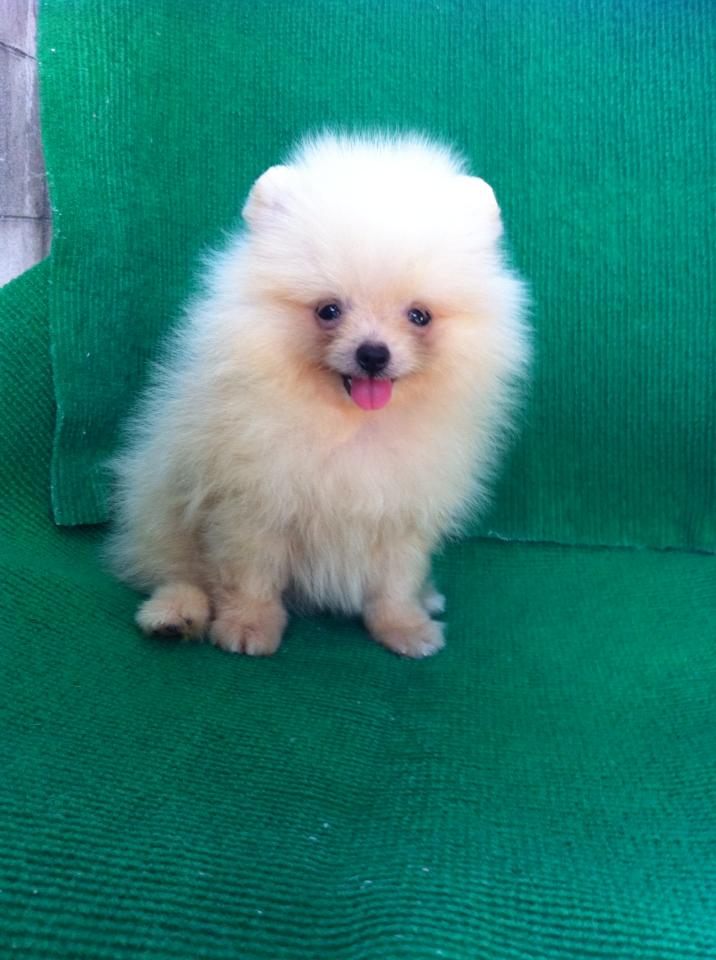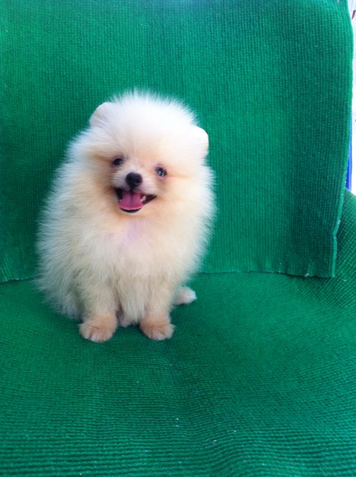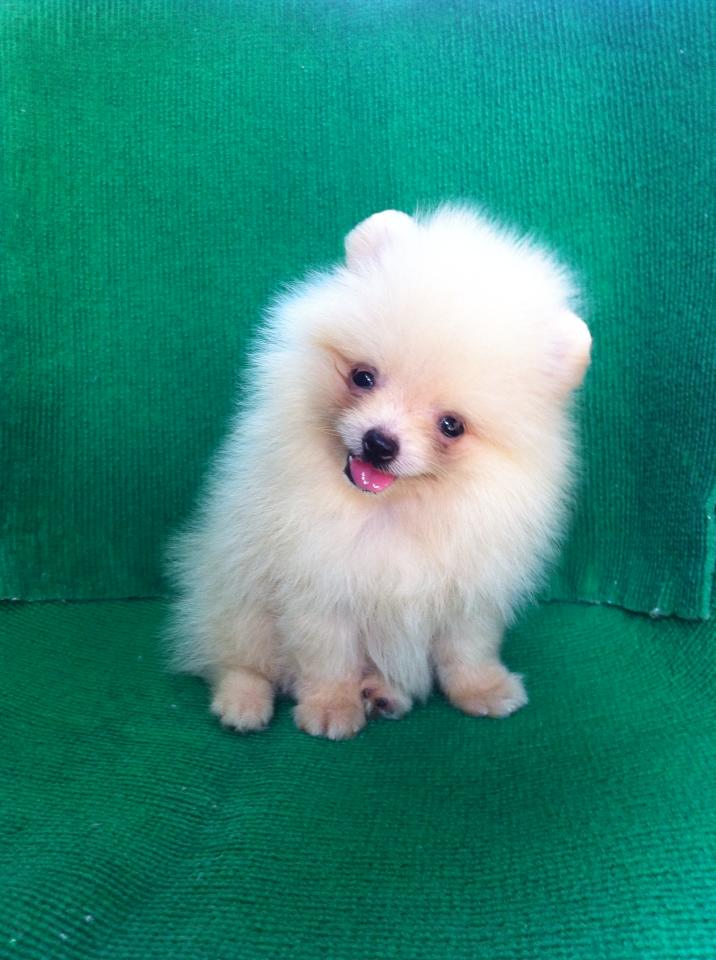 ขายลูกปอมหน้าหมีตัวเมียสีขาวครืม 1 ตัวครับ
