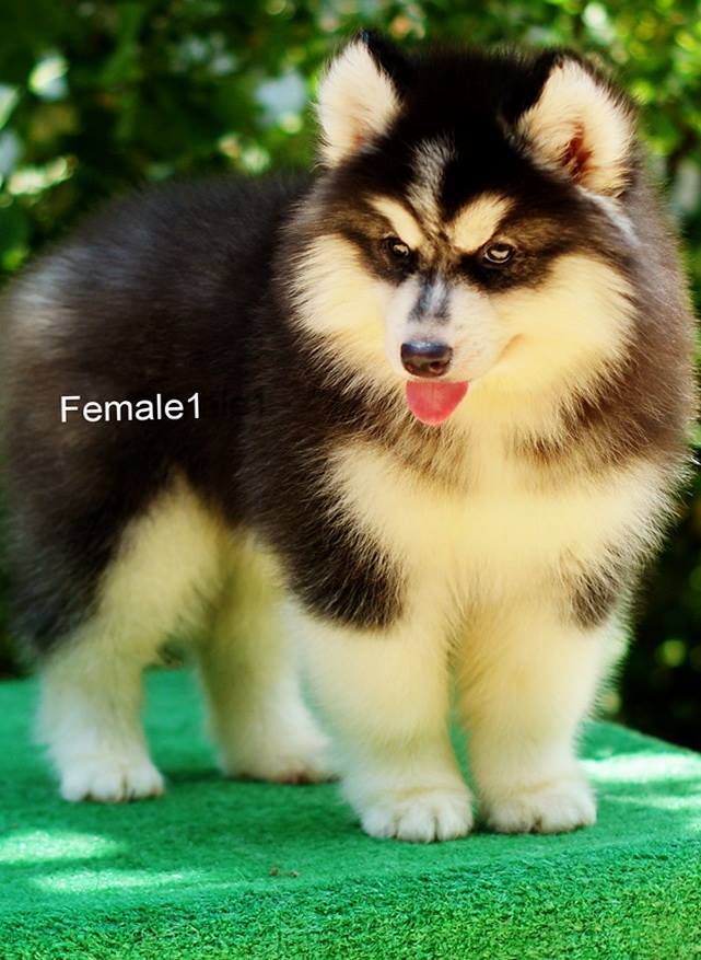 ตัวเมียสีขาวดำ ตัวสุดท้าย.ขายลูกไซบีเรียน สไตค์ขนยาว wolly coat ขนหมีๆๆ ตัวอ้วนๆๆ น่ารักๆๆ