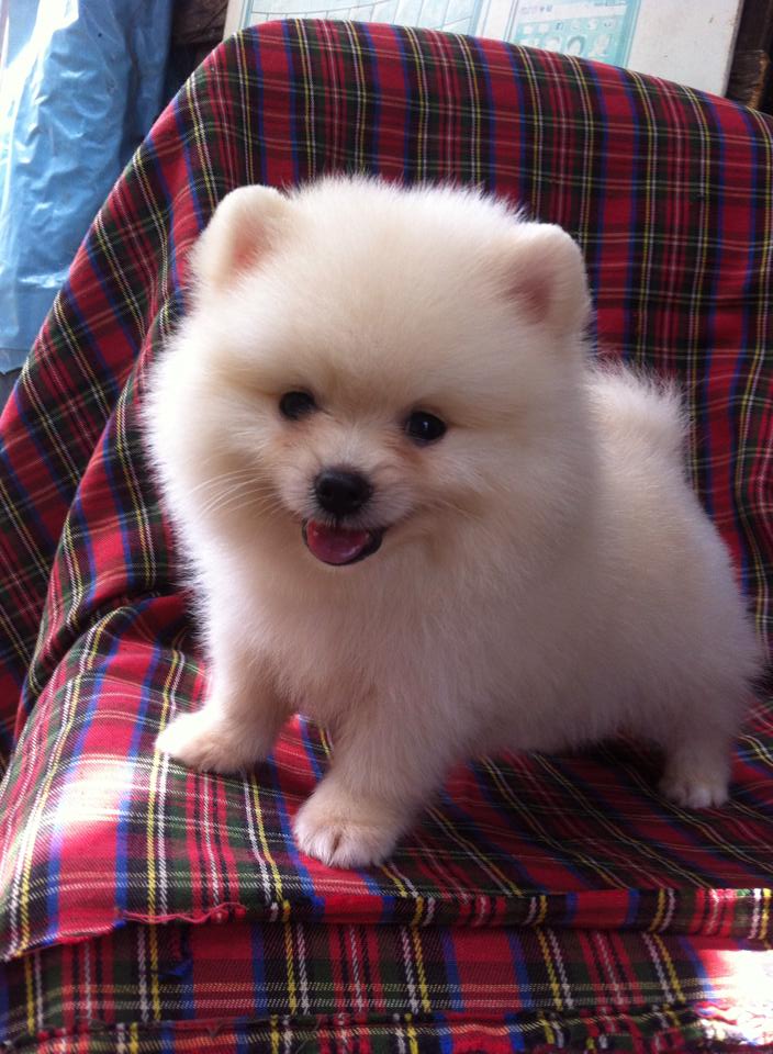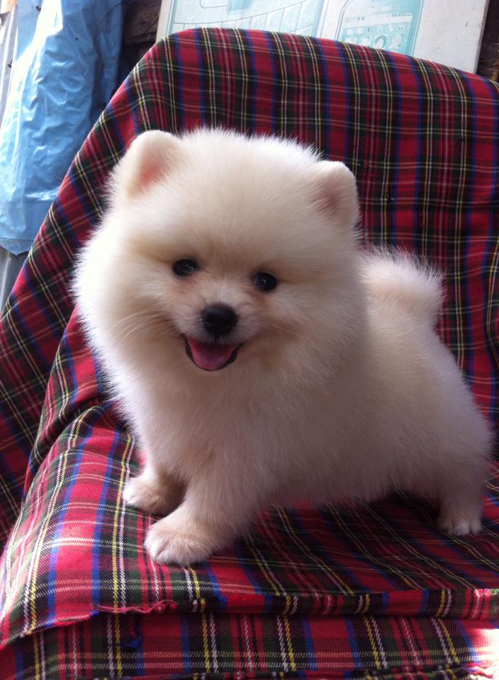 ขายลูกปอมหน้าหมีตัวผู้สีขาวครืม 1 ตัวครับ
