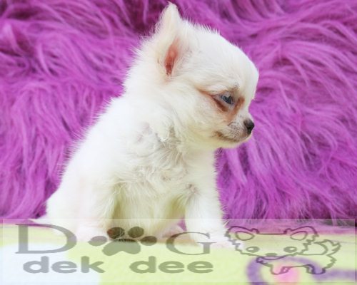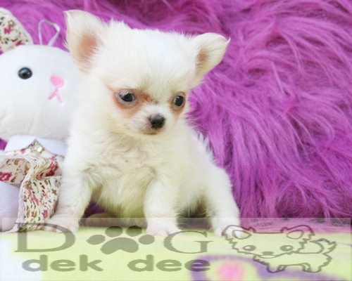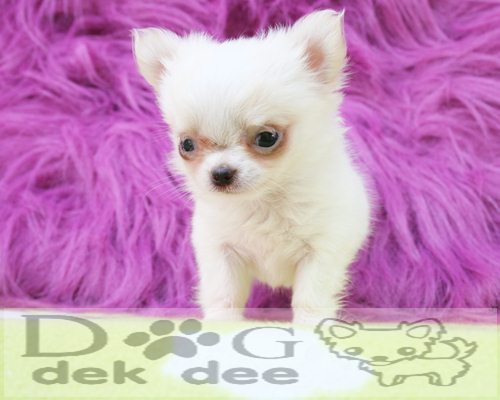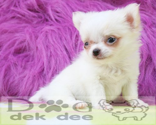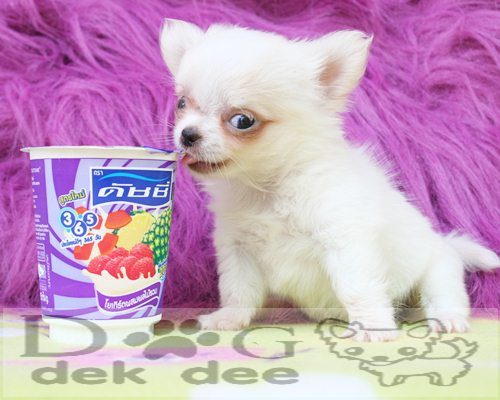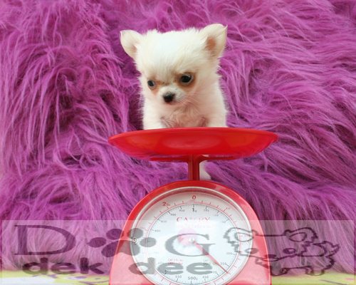 ชิวาวาขนยาว เพศเมีย สีขาวครีม ไซส์ทีคัพ เล็กมากๆ