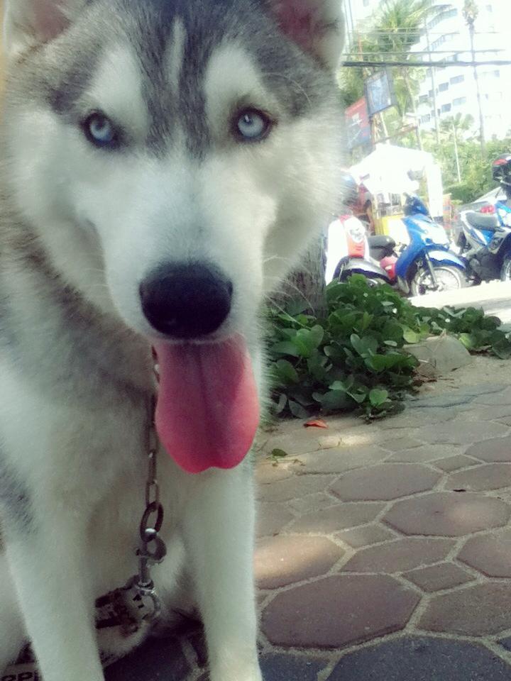 น้องไซ สีเทาดำตาสีฟ้าคู่เพศผู้อายุขวบนึง นิสัยขี้อ้อนซนปกติ