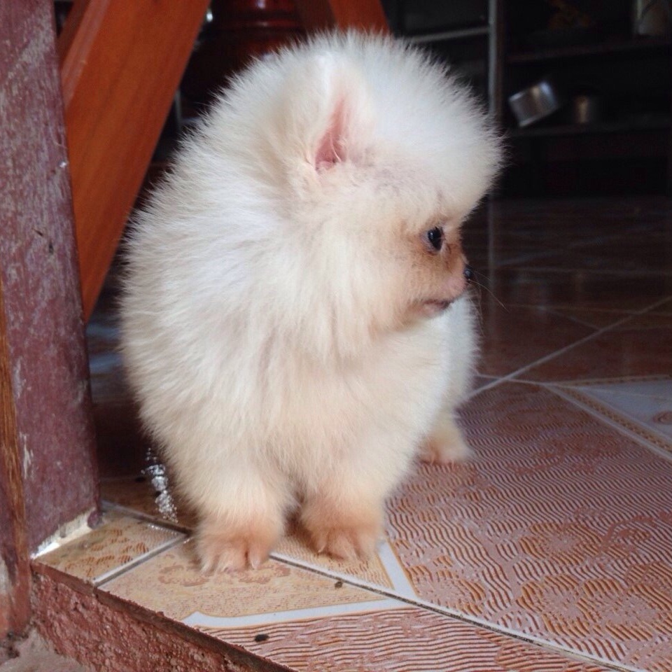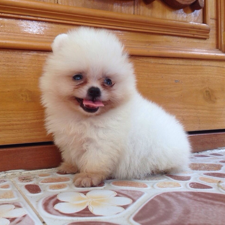 ปอมขาว เพศผู้ อายุ 2 เดือน หล่อมาก ไซส์เล็กสุดๆ ขนแน่น หน้าหมี สายเลือดดี ใบเพดเต็มใบ