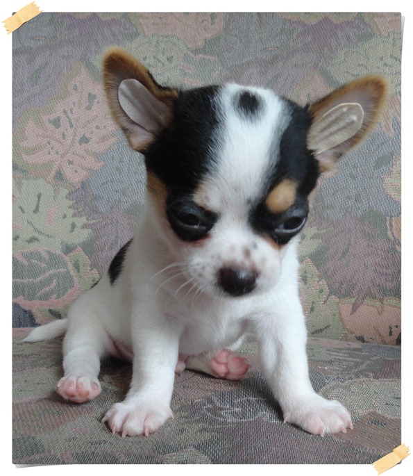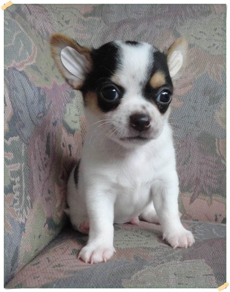 (ปิดการขายค่ะ) ขายลูกชิวาวาขนสั้นตัวผู้สีขาว-ดำอายุ 38 วัน