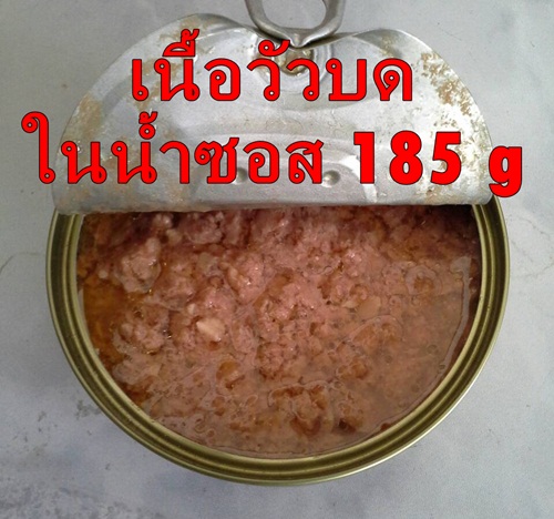 - เนื้อวัวบด ขนาด 185g ราคา กระป๋องละ 15 บาท
