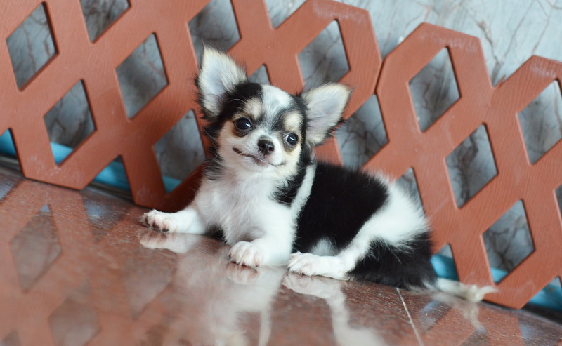 ★^-^*★ WWW.WOWWCHIHUAHUA.COM★^-^*★...."น้องโชยุ" เพศเมียขนยาวสีขาวดำมีคิ้ว(สามสี)