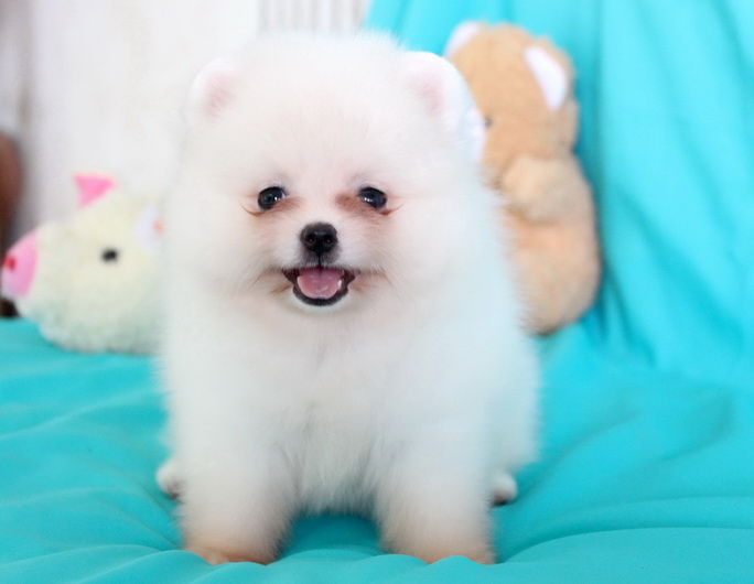 ปอม ญ ขาว หน้าหมี ร่าเริง วัคชีน ถ่ายพยาธิ แข็งแรง กินเก่ง แล้ว