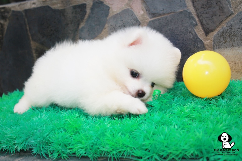 THE GREASY DOG - G-151 ปอมเมอเรเนียน เกรดสวย เพศผู้ สีขาว น่ารักๆ หน้าหมี