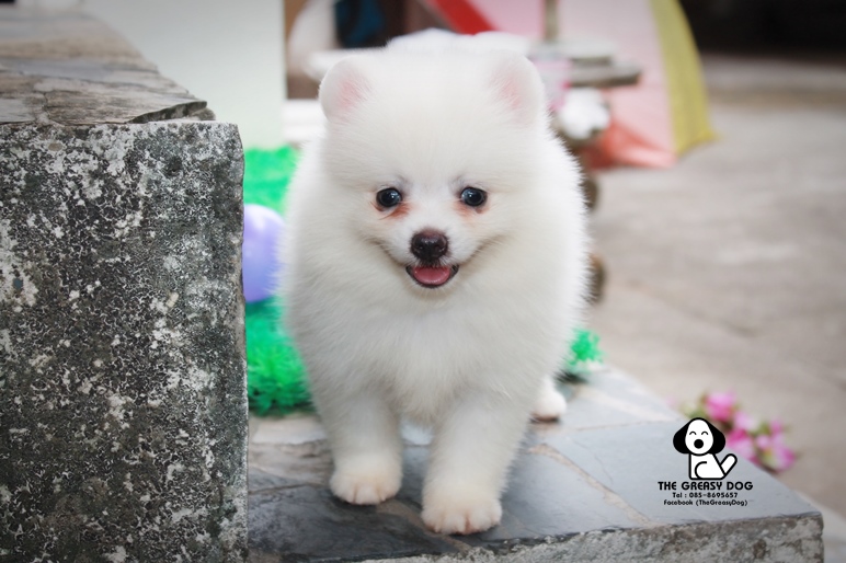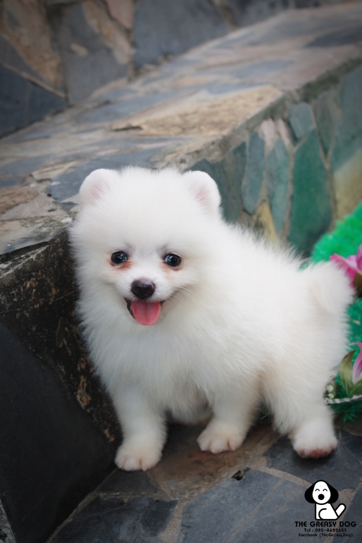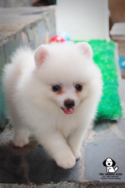 THE GREASY DOG - G-153 ปอมเมอเรเนียน เกรดสวย เพศเมีย สีขาว น่ารักๆ หน้าหมี