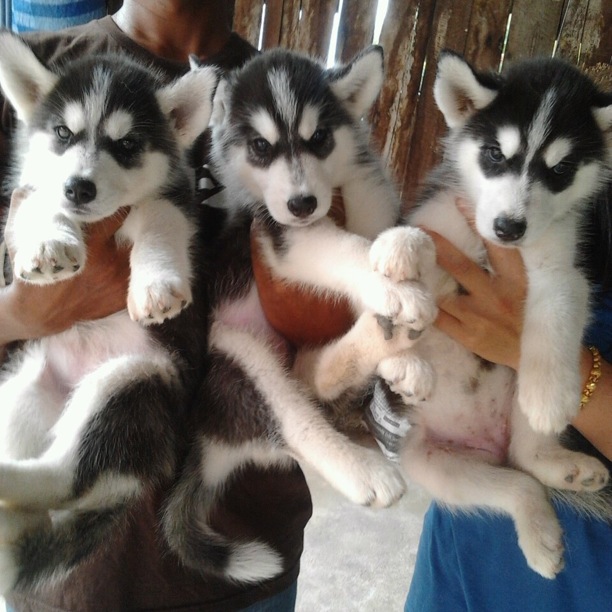 ไซบีเรียนเพศเมียสีขาวดำ ตาดำ ราคาไม่แพงเลย 7300 เท่านั้นมารับเองลดค่าน้ำมันนิดหน่อย
