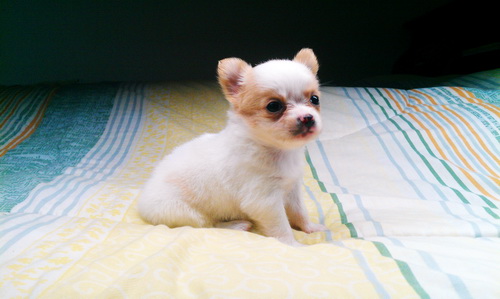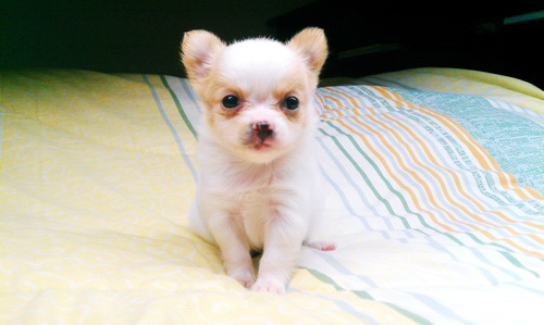 ชิวาวาขนยาว สีขาวมาร์คน้ำตาล มาร์คหน้ากาก เพศผู้